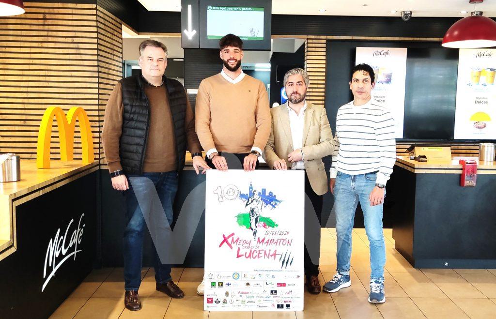 Así lo ha anunciado esta mañana el concejal de Deportes, Ángel Novillo, en rueda de prensa en las instalaciones de McDonald’s Lucena, junto a su gerente, José María Parejo, al que le ha agradecido estos 10 años de colaboración, uno de los responsables técnicos de la carrera, Javier Luque, y el concejal de Cultura y Turismo, Francisco Barbancho, para anunciar los últimos detalles y novedades.
