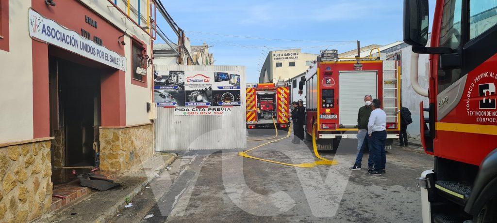Tres vehículos del Parque Comarcal de Bomberos Lucena-Cabra ha acudido a sofocar un incendio que se ha producido en la sede de la Asociación Unidos por el Baile a consecuencia de un cortocircuito en un frigorífico que se hallaba en el interior. Este colectivo dispone de una nave en la calle Vereda de Castro, en las inmediaciones del puente de la Carretera de Cabra.