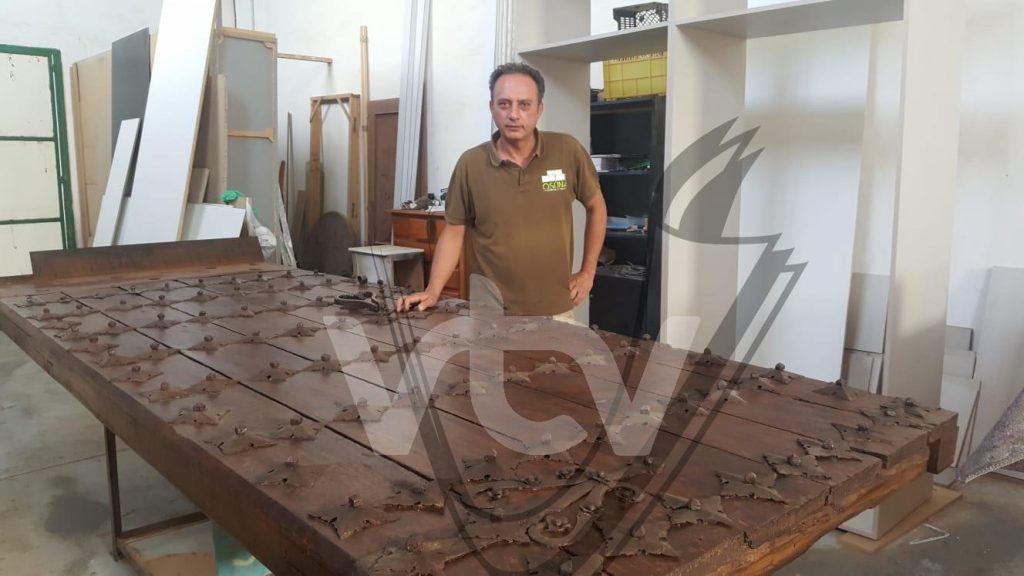El restaurador lucentino José Pedro Osuna ha sido el encargado de llevar a cabo el trabajo de restauración de las puertas de acceso a san Mateo por calle la Villa, la conocida como puerta “del pueblo”.