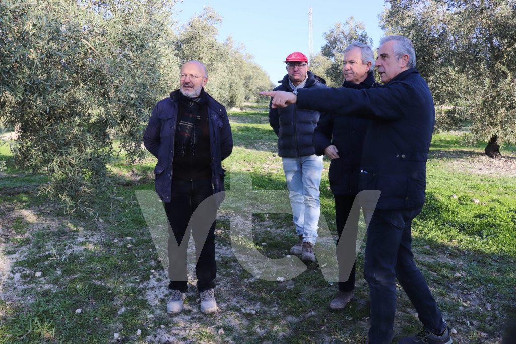 Acompañado por el concejal de Agricultura, Lucas Gómez, y el presidente de la Cooperativa, Antonio Aguilera, la visita ha comenzado en dos fincas propiedad de socios cooperativas donde estos días se trabaja en la recolección de la aceituna, una de ellas al estilo tradicional y otra mediante el proceso de recogida con paraguas, un sistema que avanza fruto de la creciente mecanización del sector.