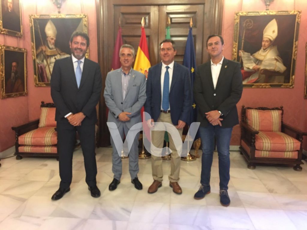 El alcalde de Lucena, Juan Pérez, y el concejal de Innovación, Manuel Lara, han mantenido una reunión de trabajo con el alcalde de Sevilla, Juan Espadas, para avanzar en el contenido de la próxima edición de SurMueble, el salón de fabricantes del mueble del sur que tiene prevista su convocatoria para el año 2019 tras reactivarse este año con su celebración en la capital andaluza.