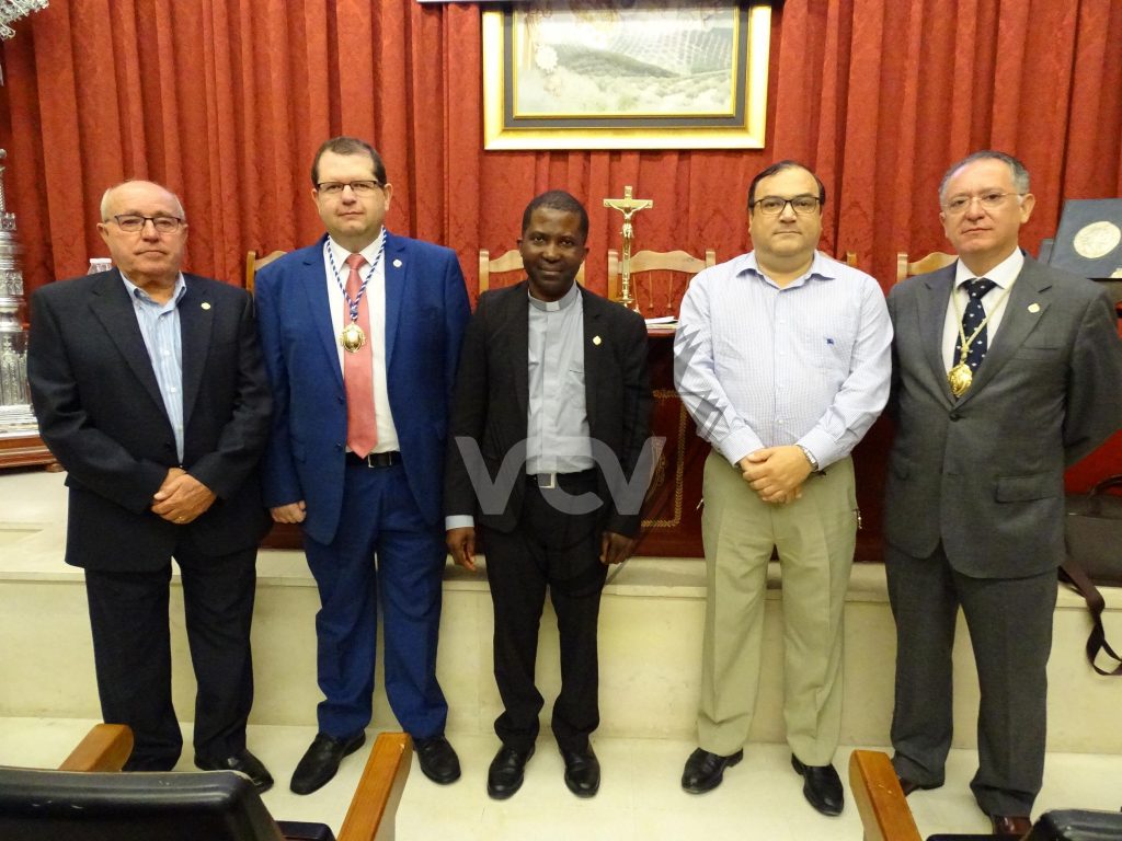 El vicario parroquial de San Mateo, Leandre Bawenda, que se ha despedido de los lucentinos en la misa celebrada en el Santuario, ha recogido el Emblema de Oro por el amor demostrado a la Virgen de Araceli y la colaboración con la Cofradía durante los cuatro años que ha permanecido en la ciudad de Lucena.