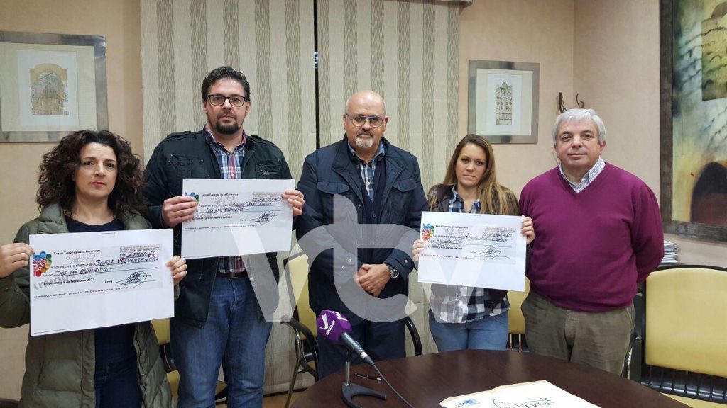 La Asociación Amigos de los niños ha hecho entrega a los padres de los niños Antonio, Helena y Rocío, de tres cheques por importe de 1.000, 2.500 y 2.500 euros, respectivamente, obtenidos a través de la campaña de recogida de tapones llevada a cabo por este colectivo.