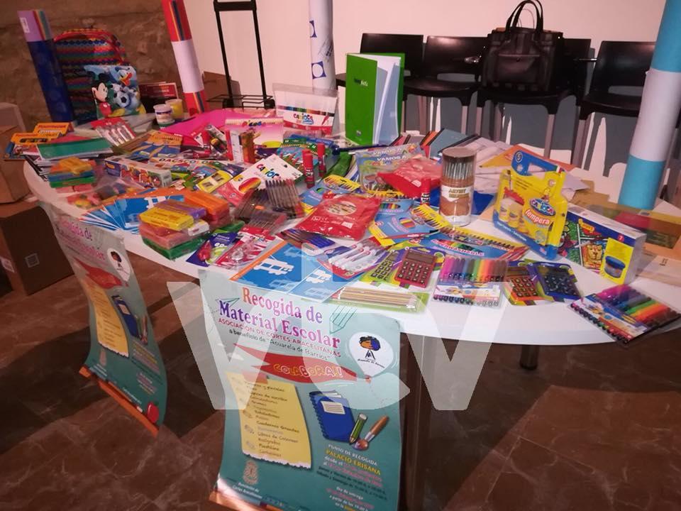 La campaña de recogida de material escolar a beneficio de “Acuarela de barrios”, una fundación implicada en el desarrollo integral de niños y jóvenes en riesgo o exclusión social, se inició el 16 de noviembre y se ha prolongado hasta el 22 de diciembre. Durante este periodo, integrantes de la Asociación de Cortes Aracelitanas han atendido este proyecto que contaba con el hall del Palacio Erisana como punto de recogida.