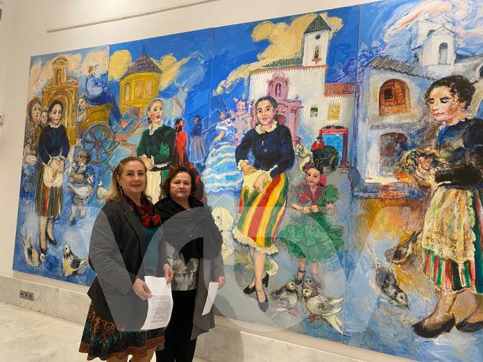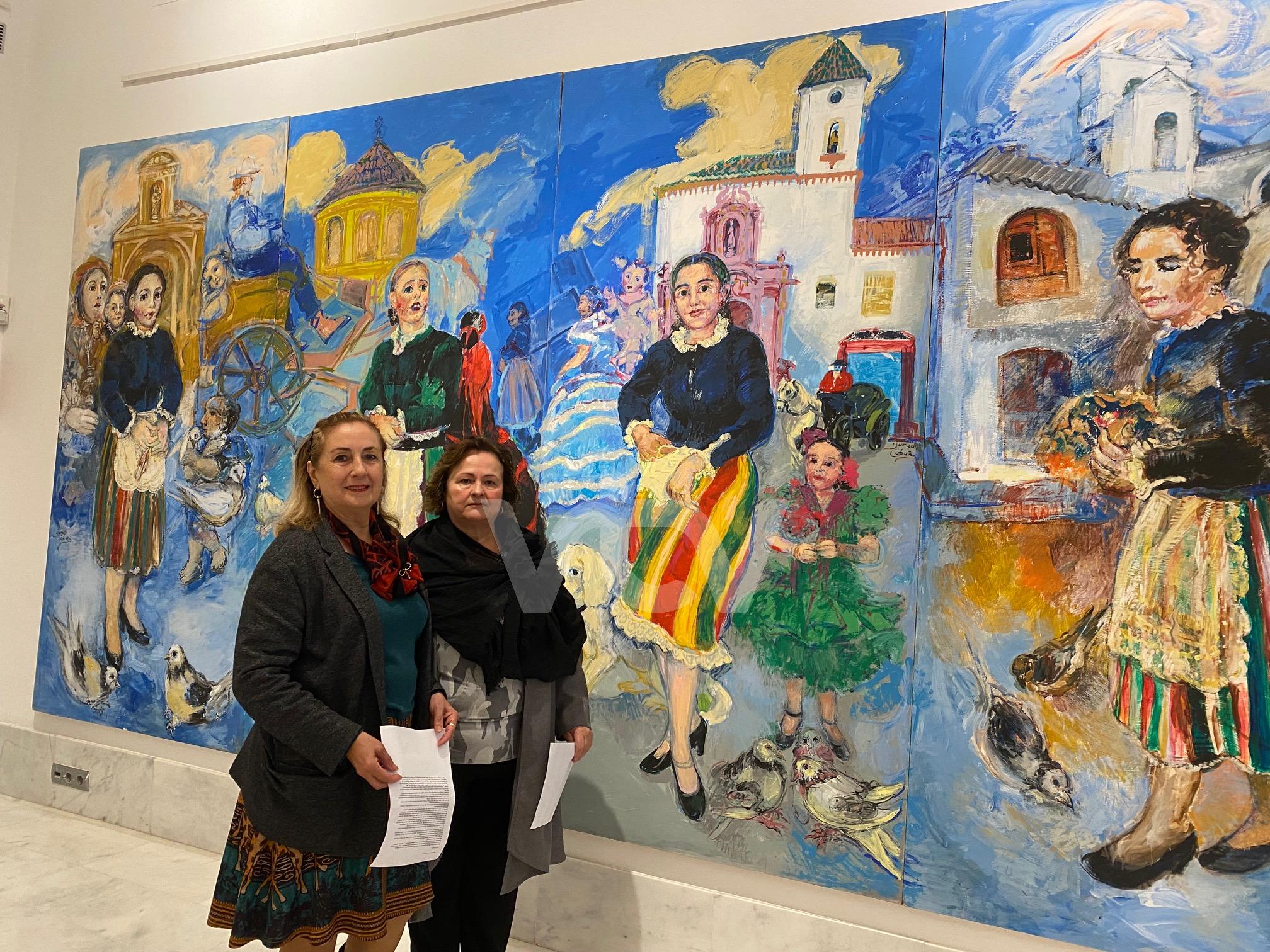 Salud Fernández y Araceli Moscoso destacan la importancia de las figuras de los artistas Rafael Aguilera e Isabel Jurado para cualquier aficionado a la pintura de la ciudad.