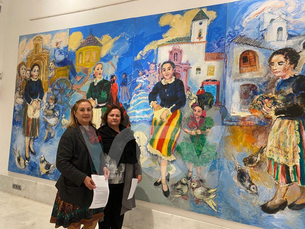 Salud Fernández y Araceli Moscoso destacan la importancia de las figuras de los artistas Rafael Aguilera e Isabel Jurado para cualquier aficionado a la pintura de la ciudad.