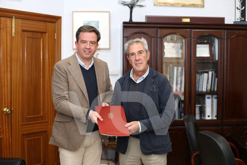 El presidente de la entidad, Francisco de Mora y el alcalde de Lucena, Aurelio Fernández, firmaban el convenio de colaboración