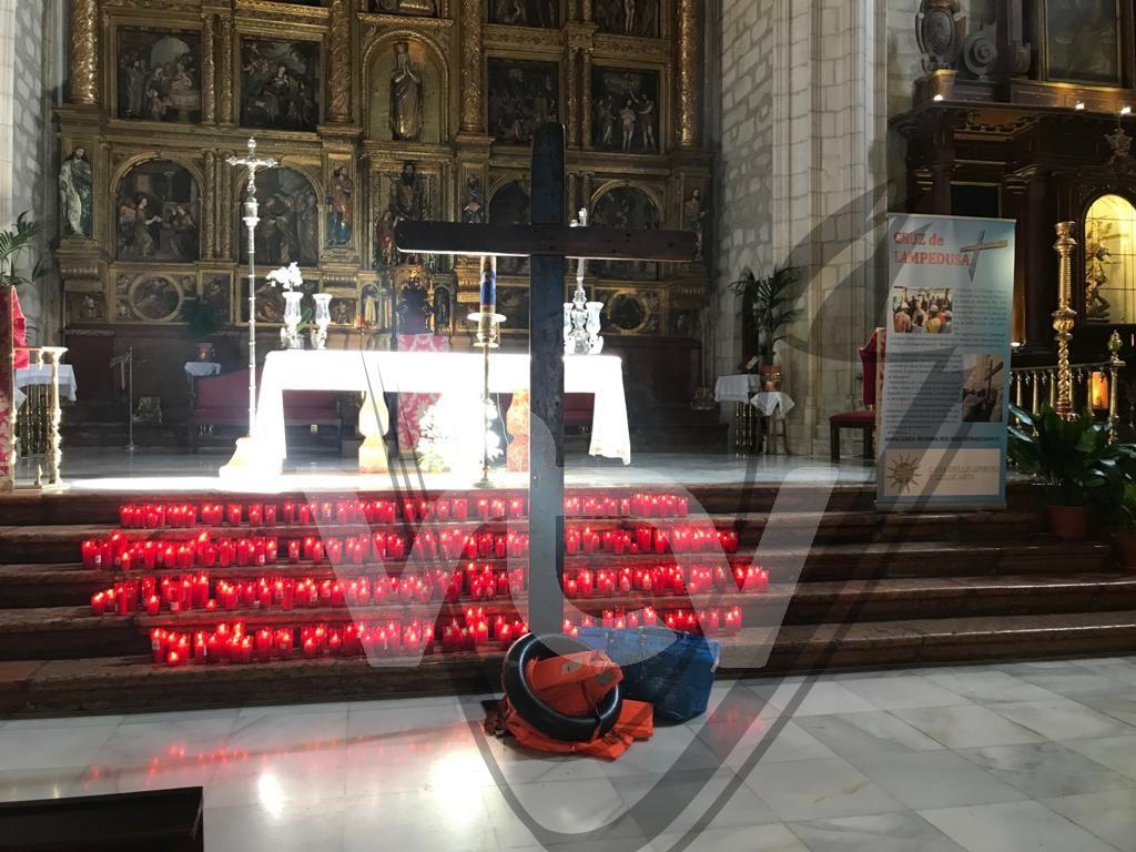 La cruz mantiene el color azul de la pintura de esta, en el que perdieron la vida 349 inmigrantes frente a la isla italiana de Lampedusa. La cruz es el símbolo de los migrantes, de la desesperación por buscar una vida mejor, por hallar la felicidad, y fue bendecida por el Papa Francisco. Llega por primera vez a Córdoba para recordar a las víctimas que cada día pierden la vida en el mar, ante la indiferencia del mundo.