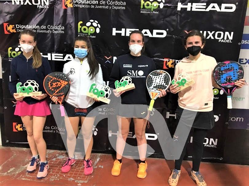 Más tarde, en la final del campeonato cordobés, Araceli Muñoz y Teresa Sánchez abrocharon el triunfo con mucha autoridad (6-2 y 6-1) frente a la pareja formada por Nuria García y Cayetana Molina.