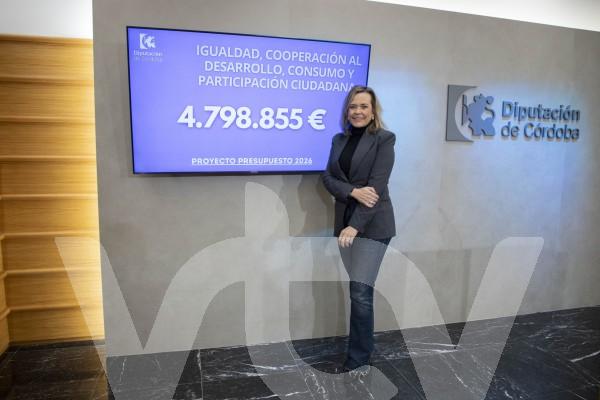 La delegada de Igualdad, Cooperación al Desarrollo, Consumo y Participación Ciudadana de la Diputación de Córdoba, Auxiliadora Moreno, ha dado a conocer el presupuesto del Área para el ejercicio 2026, “que suma un total de 4.798.855 euros, que no son solo una previsión económica, sino que son una declaración de principios que reflejan el modelo de sociedad que defendemos, más solidaria y participativa”.