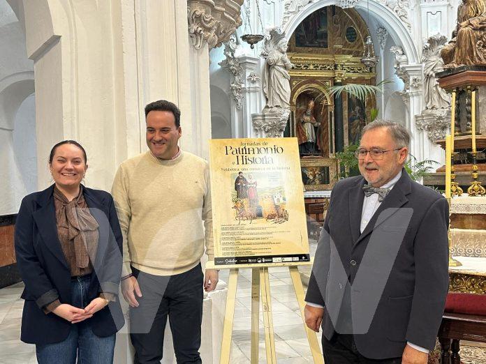 El presidente del ente mancomunado, Juan Ramón Valdivia, junto con el coordinador de las jornadas, José Calvo Poyato y la presidenta del área de Promoción Patrimonial y Turística del Ayuntamiento de Priego, Jezabel Ramírez, presentaban el contenido de estas jornadas en la Parroquia de la Asunción de la localidad de Priego.