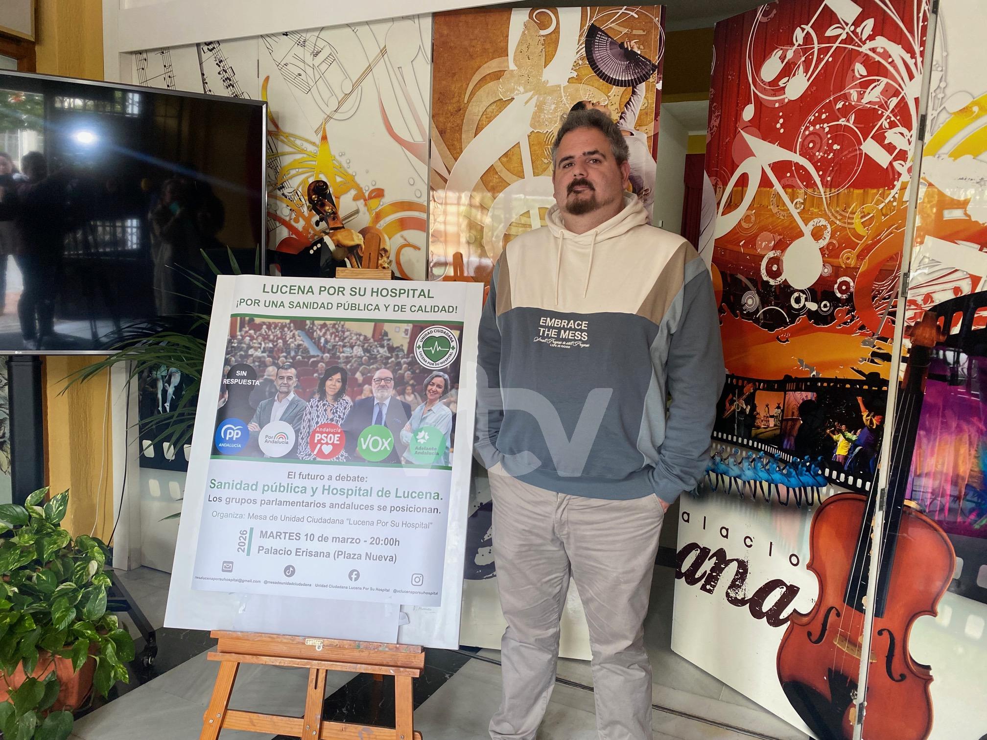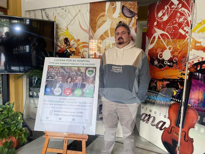 El Portavoz de la Mesa Ciudadana “Lucena por su Hospital”, Javier Morales, anunciaba que mañana martes 10 de marzo a partir de las 8 de la tarde se celebrará en el Palacio Erisana el debate “Sanidad Pública y Hospital de Lucena”. Un acto que tuvo que ser aplazado a consecuencia del temporal de borrascas.