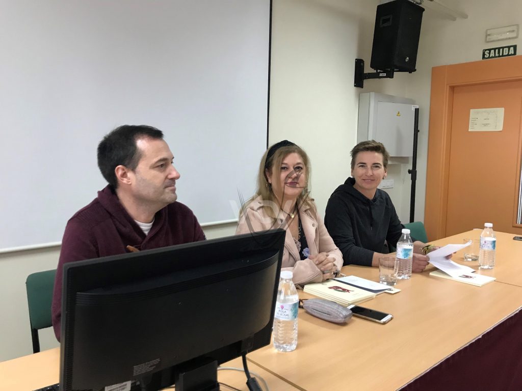 La periodista y poeta lucentina Araceli Sánchez Franco llegaba al Instituto Sierra de Aras para presentar su último libro “Kaleidos” y ofrecer una charla a los alumnos de primero de bachillerato de este centro lucentino y hablarles de su trayectoria personal y profesional. La periodista de Radio Nacional de España en Córdoba comenzaba su intervención realizando un pequeño homenaje a Manuel Lara Cantizani, y destacaba la importancia de educar en igualdad, en referencia a la conmemoración del 8 de marzo.