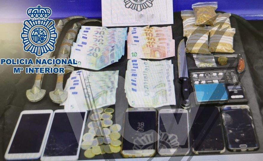 El operativo contra el menudeo de drogas culminó a comienzos de esta semana cuando, los investigadores, intervinieron en la vivienda a la que accedieron con mandamiento de entrada y registro emitido por la Autoridad Judicial competente, una piedra de hachis de más de cinco gramos, tres cogollos de al parecer marihuana, siete teléfonos móviles, numerosos utensilios utilizados para distribuir al por menor la referida sustancia, varios papeles de fumar (utilizados para envolver estas dosis) así como 300 euros en efectivo, procediendo a la detención de dos personas como presuntas autoras de un delito de tráfico de drogas.