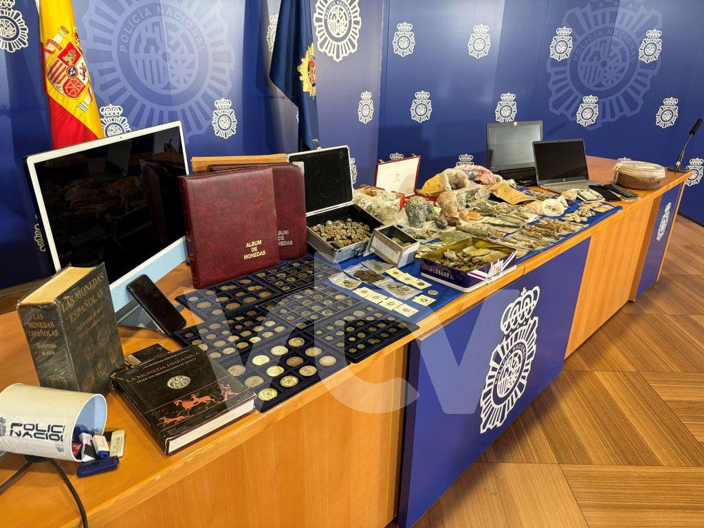 Se les ha intervenido 3.000 piezas de arqueología (monedas, puntas de flecha, fíbulas, figuras y una vasija de vidrio, entre otros), 73 monedas de plata y 37.625 euros en efectivo, entre otros efectos
