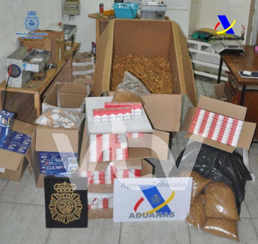 Una vez que los agentes identificaron toda la estructura, procedieron a la detención durante el transcurso del miércoles de la pasada semana de cuatro personas como presuntas autoras de un delito de contrabando e incautando en los registros practicados en los diferentes inmuebles de más 2.860 cajetillas de tabaco, 230 kg de hoja de tabaco, 2180 cigarrillos sin marca así como cuatro maquinas picadoras de tabaco entre otros objetos. Todo ello sin ningún tipo de control sanitario tanto en su almacenaje como en su distribución, ni ningún tipo de garantía de calidad, siendo la finalidad de los implicados en esta actividad delictiva eludir la fiscalidad a este tipo de productos.