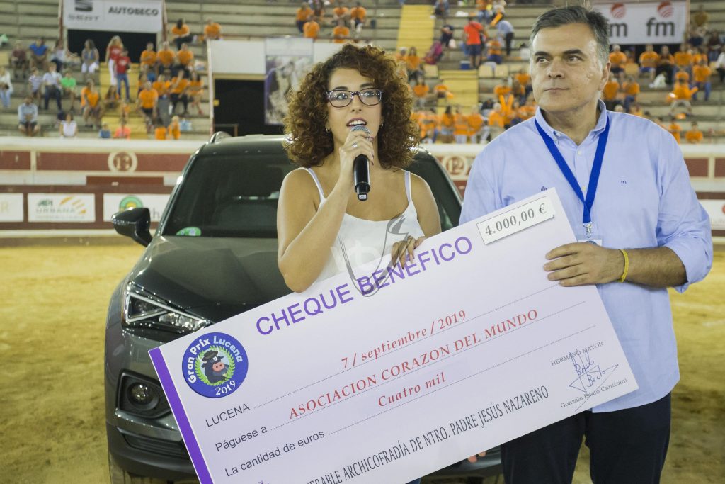 Tras la celebración del Gran Prix Lucena 2019, la Venerable Archicofradía de Nuestro Padre Jesús Nazareno entregó a la familia de Alba María Luque Muñoz la cantidad de 4.000 € para el tratamiento médico que necesita esta joven lucentina. Alba nació con parálisis cerebral lo que le provoca movimientos incontrolados en piernas, brazos, cuello, sin embargo, puede dominar el de sus ojos.