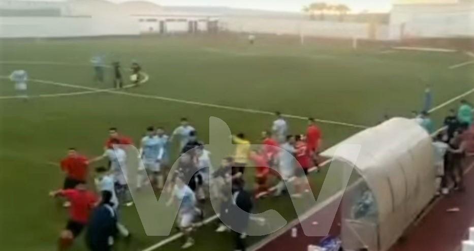Y es que, el encuentro se paralizaba por vez primera, en el minuto 60, por el lanzamiento de mecheros desde la grada, aunque pudo reanudarse un rato después. Con el tiempo ya cumplido, un intento de bofetada de un futbolista rojinegro a otro visitante desató una auténtica pelea campal entre los componentes del Ciudad de Lucena B, que trataban de repeler dicha agresión y defenderse, según testigos presenciales, y los del anfitrión, a los que se sumaron hinchas y familiares que saltaron desde la grada, como puede observarse en las imágenes difundidas por el club lucentino.