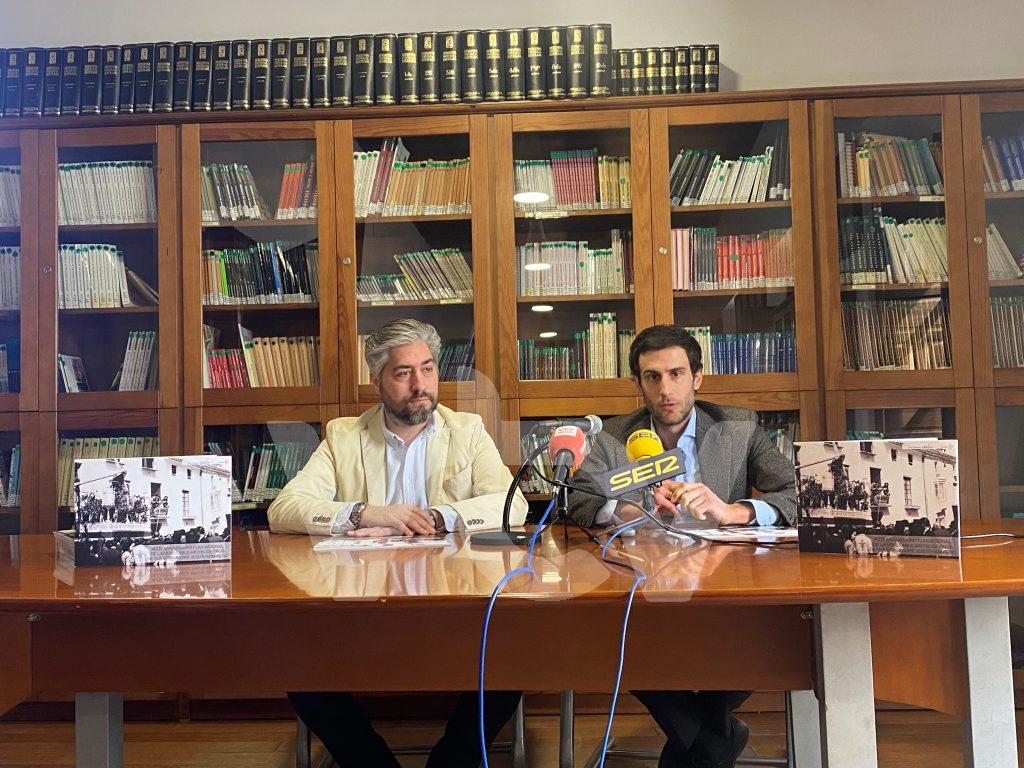 El concejal delegado de Cultura del Ayuntamiento de Lucena, Francisco Barbancho, y el vocal de la Archicofradía de Jesús Nazareno, Pedro Santiago, presentaban una colección de láminas históricas del Viernes Santo que se han editado con motivo del 425 aniversario de la Archicofradía.