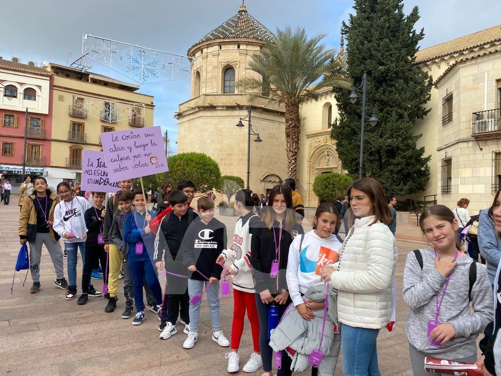 Los distintos centros educativos de Lucena, junto con representantes de los cuerpos y fuerzas de seguridad y los representantes políticos del Ayuntamiento se congregaban en la Plaza de Archidona para mostrar su repulsa por la violencia de género.
