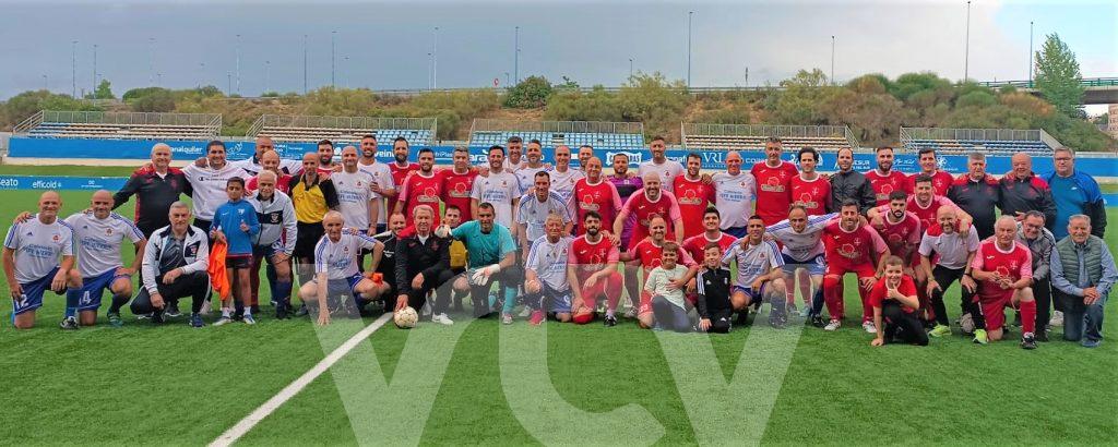 El equipo de Veteranos del Vélez Málaga CF actuó con Bola en la portería; los defensas Javi, Melgari, Cesco Juan Mata y Pepito; en el centro del campo Manu, Luis Carlos y Adamo; y los delanteros Yuste y Boque. En el segundo tiempo salieron Carlos, Pareja, Buitre, Andrés, Tropa y Leyva.
