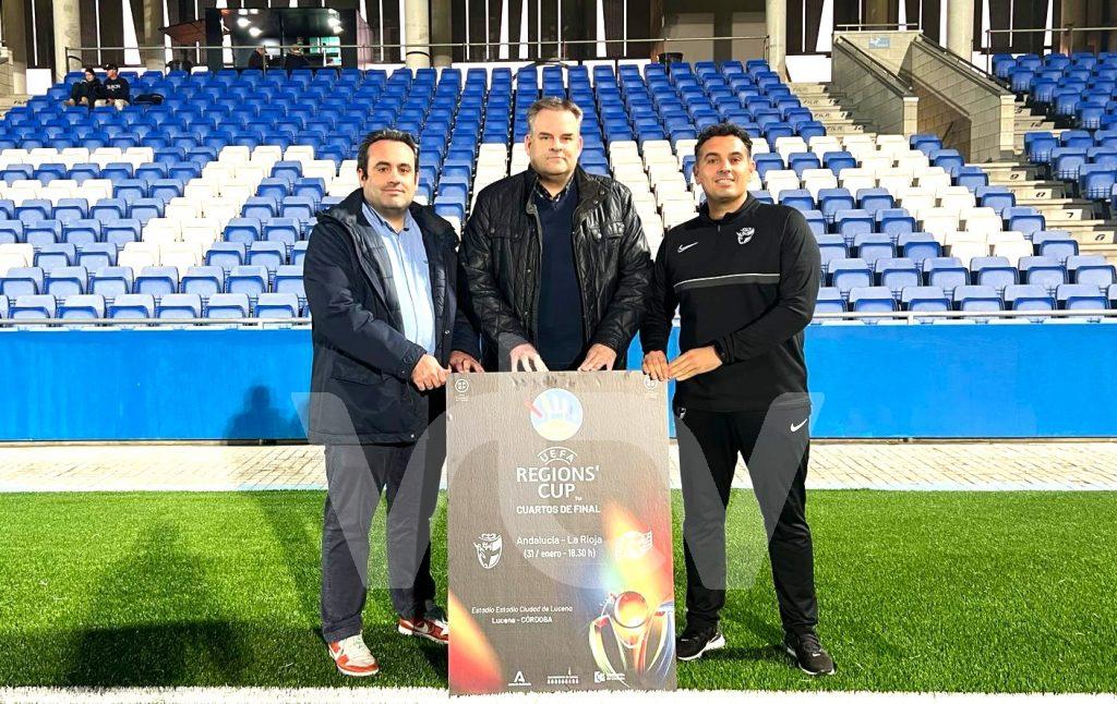 La presentación oficial del encuentro Andalucía-La Rioja ha contado con la presencia del concejal de Deportes del Ayuntamiento de Lucena, Ángel Novillo, el presidente del CD Ciudad de Lucena, Jorge Torres y el seleccionador andaluz, Antonio Macías.