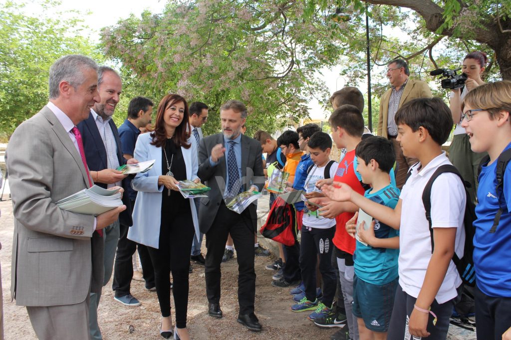 El objetivo de este nuevo material es promover la difusión de los paisajes andaluces, según ha desvelado el consejero de Medio Ambiente y Ordenación del Territorio, José Fiscal, durante su visita a la vía verde a su paso por la Estación de Lucena, en una actividad en la que ha estado acompañado por el alcalde lucentino, Juan Pérez, y la vicepresidenta de la Diputación, Felisa Cañete. Todos han tenido la oportunidad de entregar el material al alumnado de 6º curso del CEIP El Prado.