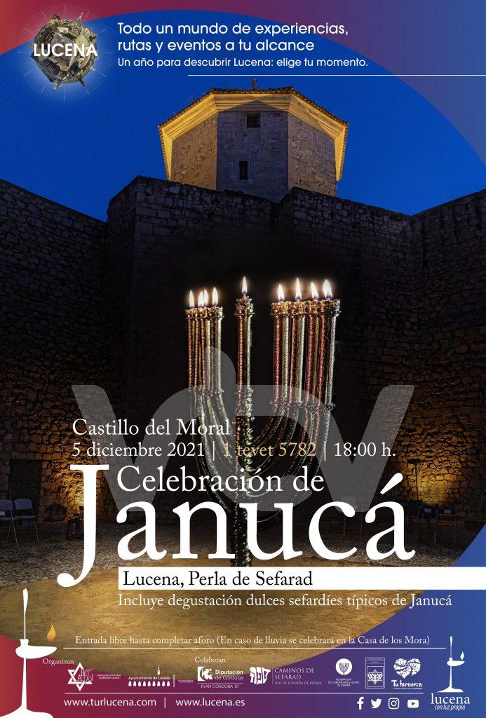 Desde la Asociación Lucena Bet Alfasi, en colaboración con la Delegación de Turismo del Ayuntamiento de Lucena, se organiza la festividad de Januká en Lucena el día 5 de Diciembre de 2021, por tercer año consecutivo después de los éxitos de los años 2019 y 2020, dentro de un ambiente festivo, inclusivo, diverso y con ánimo de dar a conocer y compartir esta tradición de la cultura sefardí con la ciudadanía y con el público espontáneo, que dadas las fechas navideñas, estarán por el centro de la ciudad y se puedan acercar al Castillo del Moral donde se ubicará el escenario, siempre manteniendo las medidas sanitarias que imperan con motivo de la pandemia por la Covid 19.
