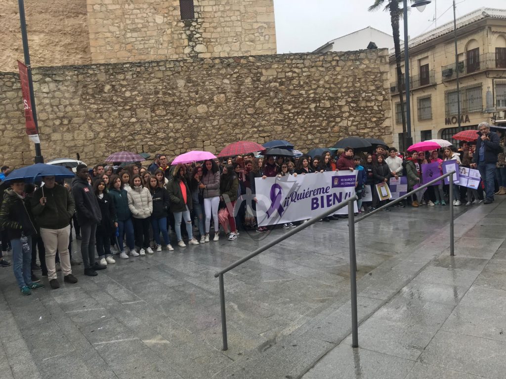 Hoy lunes 25 de noviembre tenía lugar un paro institucional de cinco minutos en la Plaza Nueva y la instalación de la mesa informativa de las Asociaciones de Mujeres de Lucena. Al manifiesto de Diputación le daban lectura los alumnos de distintos institutos de Lucena.