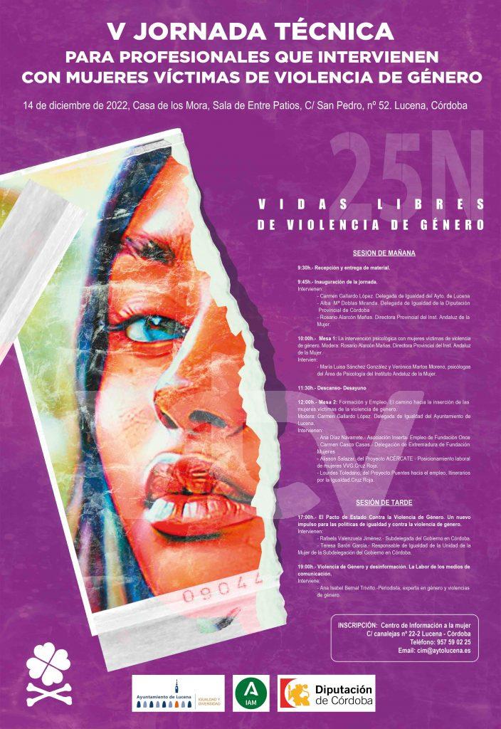 La Concejalía de Igualdad y Diversidad del Ayuntamiento de Lucena celebra este miércoles la quinta edición de la Jornada técnica para profesionales que intervienen con mujeres víctimas de violencia de género, una cita que va ganando presencia en el calendario local como una actividad ineludible en la recta final de la programación en torno al 25N.