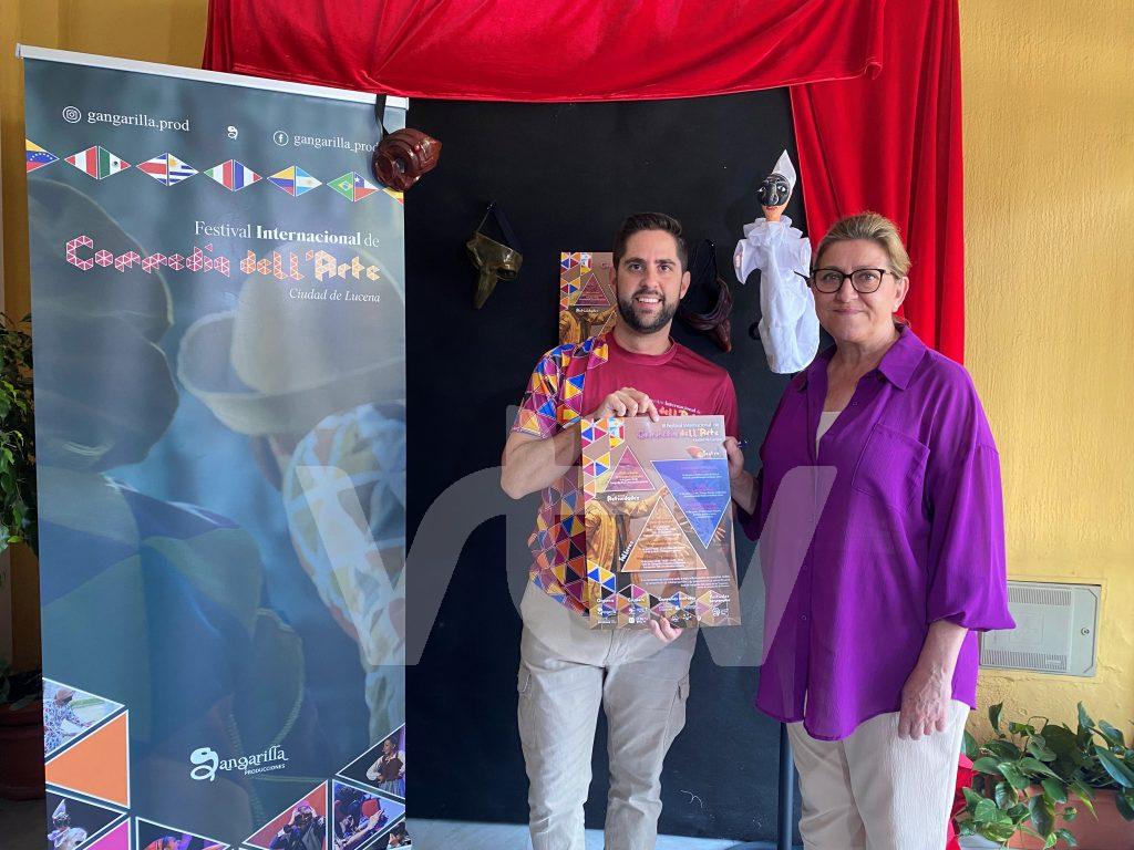 La concejal delegada de Medio Ambiente y Patrimonio, Charo Valverde, y Joaquín Serrano, director de la compañía lucentina Gangarilla Producciones, han presentado esta mañana el III Festival Internacional de Commedia dell’Arte – Ciudad de Lucena, que se celebrará del 9 al 14 de junio con una intensa programación de actividades culturales, talleres formativos y espectáculos teatrales. El evento cuenta con el respaldo de las delegaciones de Cultura, Igualdad, Medioambiente y Patrimonio del Ayuntamiento de Lucena.