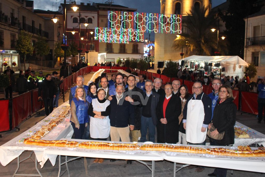 Lucena volvía esta tarde a acoger un año más una nueva edición del Roscón de Reyes Gigante con marcado carácter solidario, en esta ocasión a beneficio del ‘Proyecto Helena’ con la colaboración del AMPA del Colegio Nuestra Señora de Araceli.La cita tuvo lugar en la Plaza San Miguel, a partir de las 18:30 horas, con el sello pastelero de Panadería Nuestra Señora de Araceli, encargada de preparar las 5.000 raciones que se han repartido de este tradicional dulce navideño.