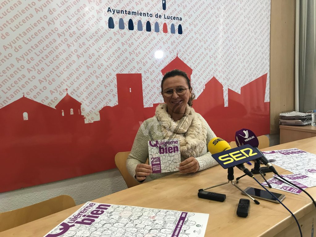 El Ayuntamiento de Lucena celebrará el Día Internacional contra la Violencia de Género con una campaña de actividades que coordina la Delegación de Igualdad bajo el título ‘Quiéreme bien’ como apuesta por impulsar “una convivencia entre personas que se base en el amor sano, sin violencia”.