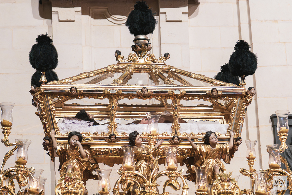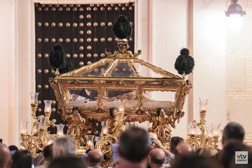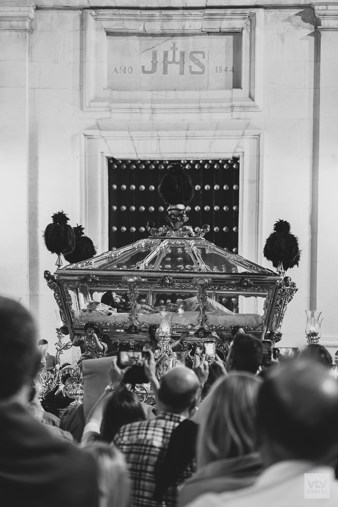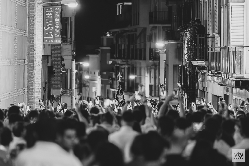 Estampas históricas de Jesús y del Santo Entierro, juntos, subiendo la calle Curados y entrando en el Llanete de la Capilla para, también de manera extraordinaria, entrar en San Pedro Mártir y no en la Capilla como es habitual cada Viernes Santo.