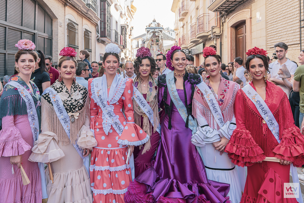 Tras la misa, que comenzara a las siete de la mañana, la Virgen, a las ocho de la luminosa mañana, salía a la plaza Nueva para, por su itinerario de costumbre encaminarse, poco a poco, hasta la Puerta de la Mina no, sin antes, visitar a los ancianos residentes en San Juan de Dios.