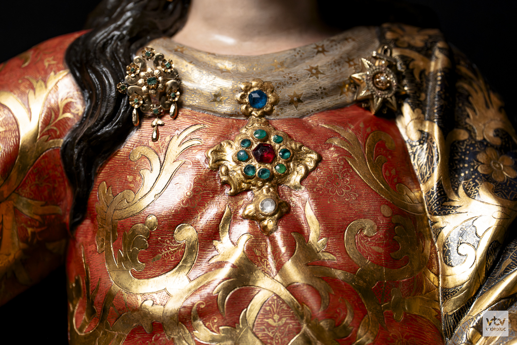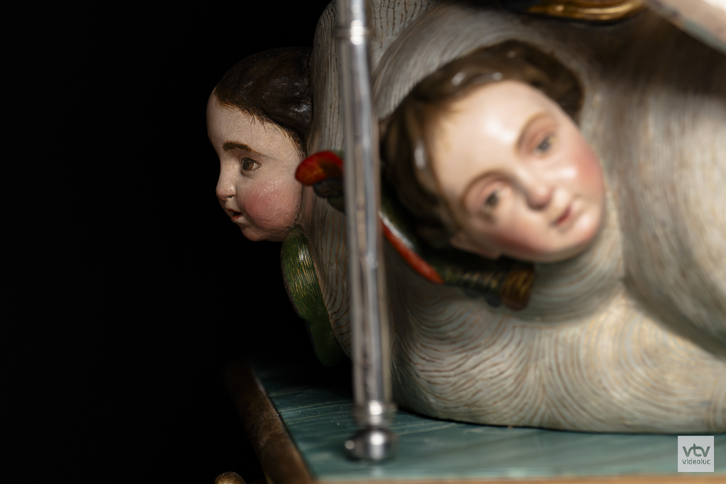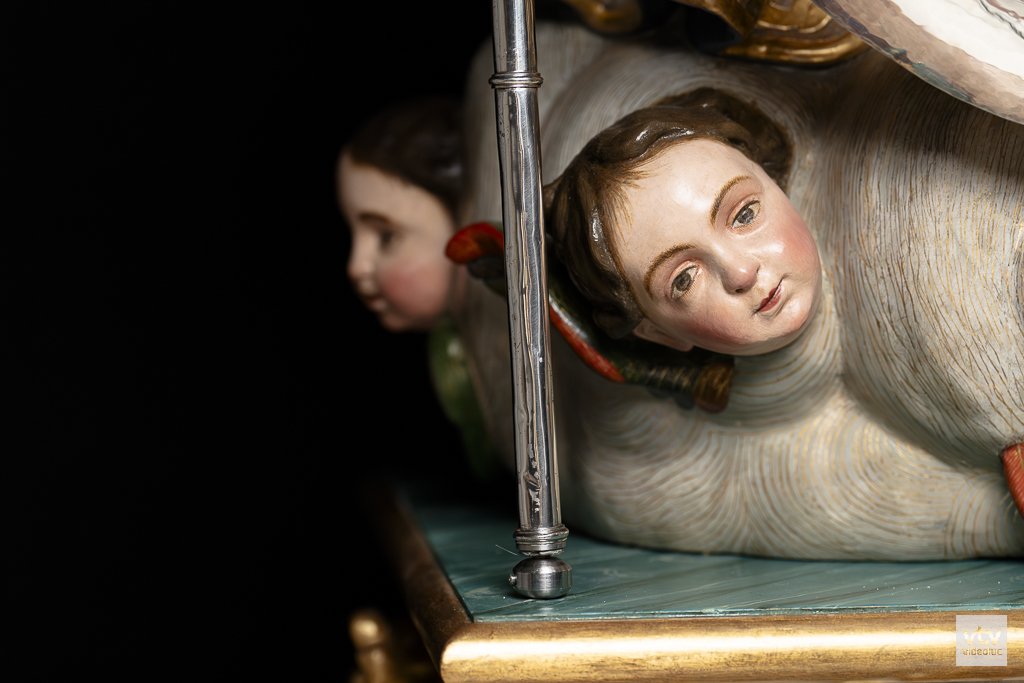 El proceso, con técnicas que siguen los principios de mínima intervención, máximo respeto a la obra original, discernibilidad y reversibilidad, que permitió descubrir los colores originales del manto, el vestido y los querubines.