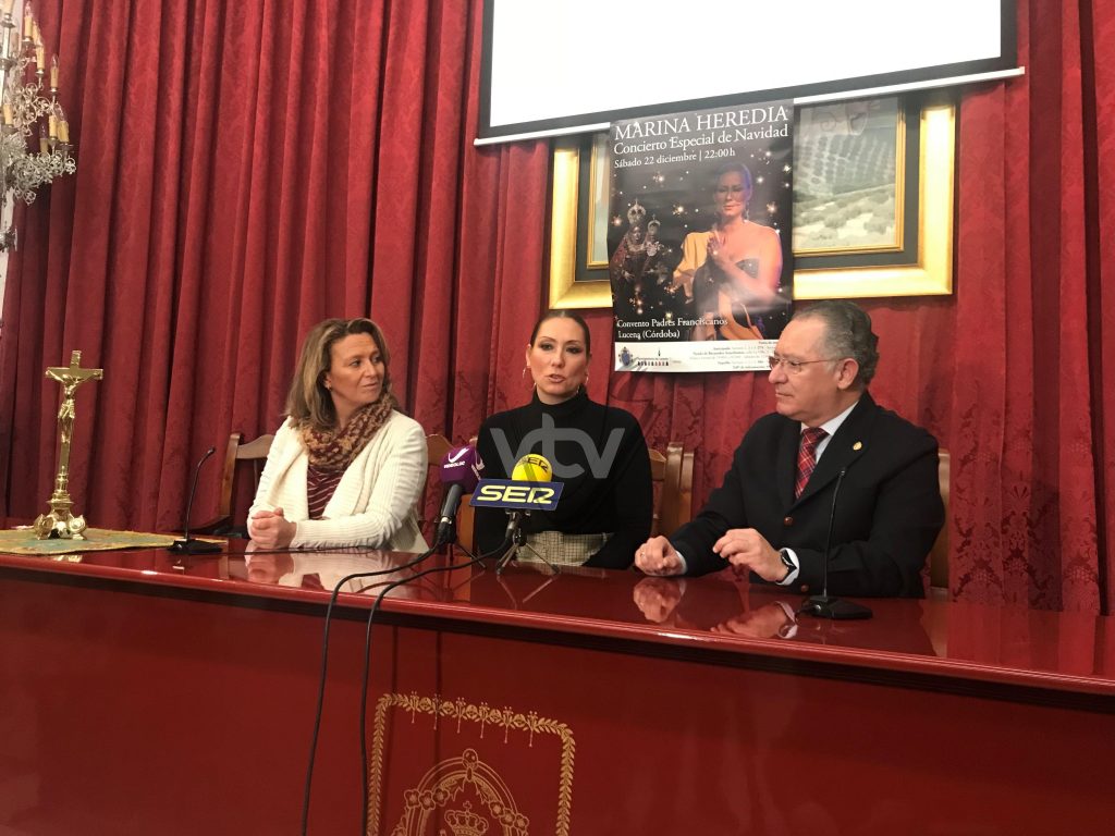 La artista granadina Marina Heredia ofrecerá un concierto el próximo sábado 22 de diciembre en la Iglesia Conventual de los Reverendos Padres Franciscanos. La recaudación servirá para contribuir con la Archicofradía de María Santísima de Araceli. La cantaora flamenca, anunciaba que interpretará villancicos populares y que compartirá el escenario con grandes músicos. Además, a lo largo de la actuación cantará también su padre Jaime Heredia.