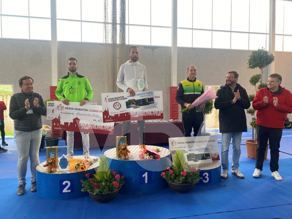 Moussab Hadout, del Club Virgen de Belén, se imponía en la XI Media Maratón de Lucena con un tiempo de 1 hora, 9 minutos y 11 segundos. Este atleta ya consiguió la primera posición de la prueba en el año 2017, con un tiempo de 1 hora, 4 minutos y 55 segundos, el más bajo hasta el momento. El segundo puesto lo conseguía Andrés Morales, del Club Surco Lucena, con un tiempo de 1 hora, 10 minutos y 29 segundos, y el tercero, el cordobés Jesús Alguacil del Runners Pura Cepa, con 1 hora, 11 minutos y 58 segundos.