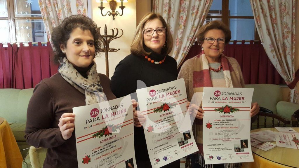 La presidenta de este colectivo ha destacado que el día 30 de noviembre, como viene siendo tradicional, el taller estará dedicado a la elaboración de un menú navideño en el que participarán Antoñita López, Juani Shiaffino y Marina Artacho. El viernes 1 de diciembre, el abogado lucentino José Antonio Vigo impartirá una conferencia bajo el título “Algo sobre la Navidad” con la intervención del club juvenil “Alicena”, el cante de Araceli Campillos y la guitarra de José Manuel Morillo. Desde Mujeres en Igualdad han recordado que el día 10 de diciembre, también en el Círculo Lucentino, tendrá lugar el tradicional almuerzo solidario a beneficio de las Cáritas de Lucena con un precio de 10 euros por persona