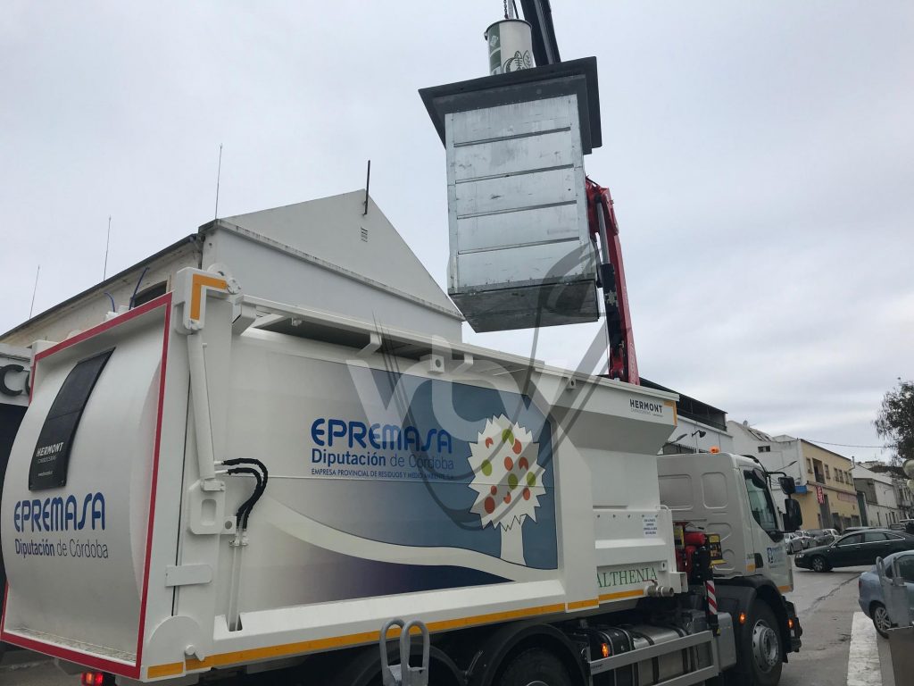 El Ayuntamiento de Lucena y Epremasa incorporan a su flota de vehículos de recogida de basura en contenedores soterrados un nuevo modelo de camión de carga superior, mediante grúa, de dimensiones más pequeñas para disminuir los daños en el pavimento de las calles del centro histórico de la ciudad.