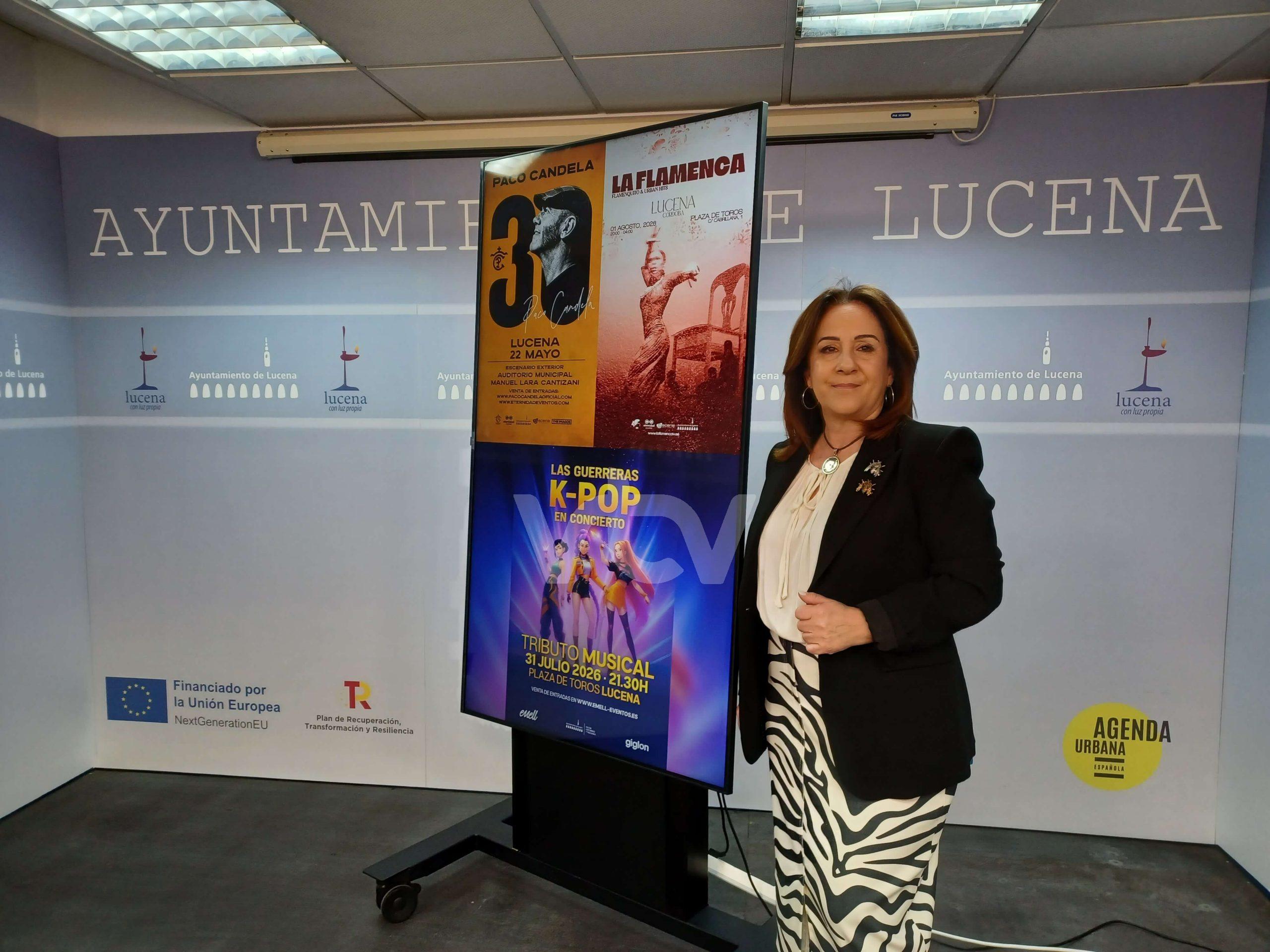La concejal delegada de Fiestas, Araceli Rodríguez ha anunciado una serie de conciertos que vienen a completar la programación festiva del verano y por tanto el F’estival Lucena 2026.