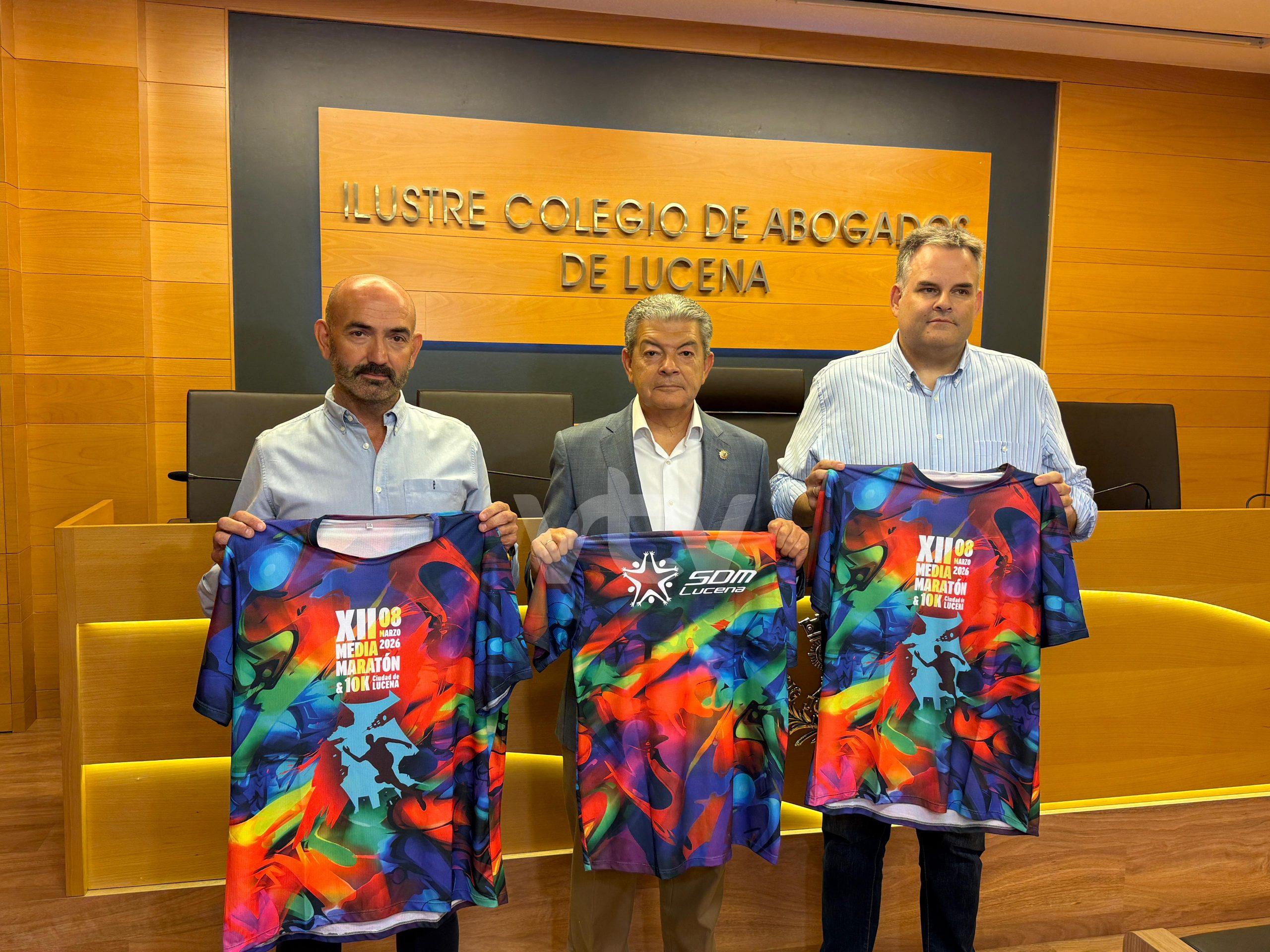 La sede del Ilustre Colegio de Abogados de Lucena ha acogido este miércoles la presentación de la camiseta oficial de la XII Media Maratón y la Carrera Popular 10K, en un acto en el que han participado el concejal de Deportes, Ángel Novillo; el presidente del Club Maratón Lucena y director técnico de la prueba, Pedro Díaz; y el vicedecano del Colegio, José Antonio Vigo.