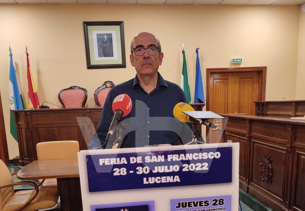 A unos días de que arranque la Feria de San Francisco 2022, el concejal de Fiestas del Ayuntamiento de Lucena, José Pedro Moreno, ha presentado la programación de actividades previstas con motivo de esta tradicional fiesta del barrio de San Francisco que se desarrollará desde el 28 al 31 de julio.
