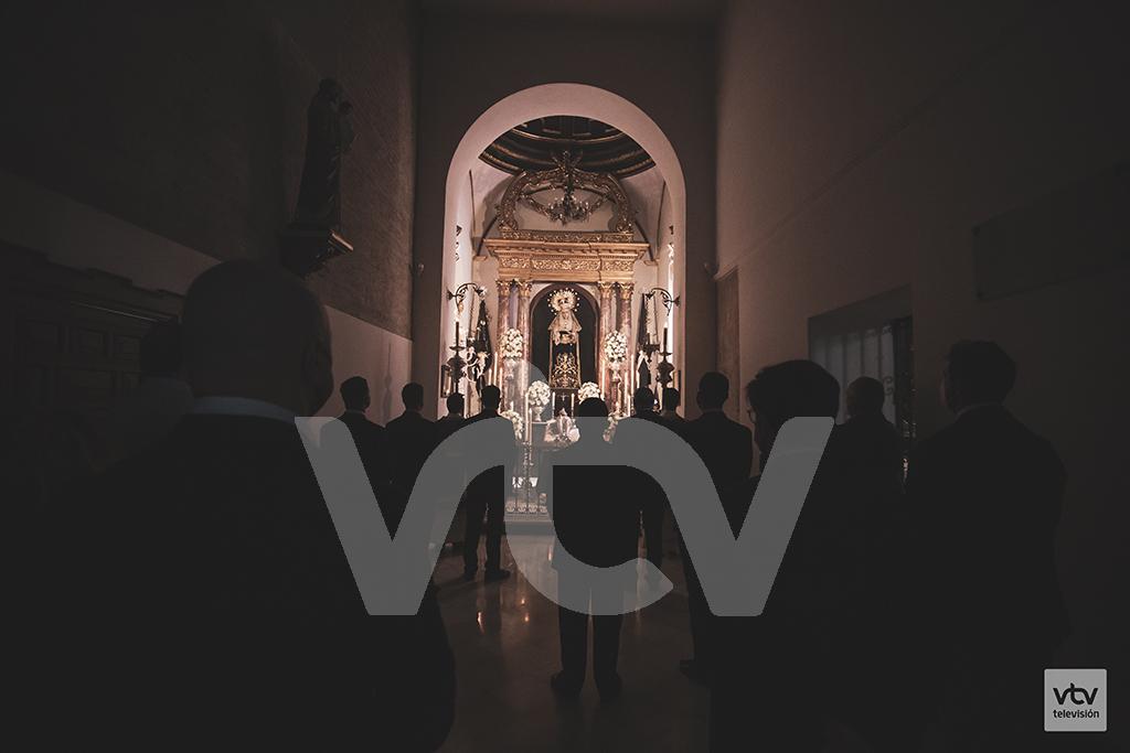 La Soledad de la Virgen velando la sepultura de su único Hijo, Dios hecho hombre muerto sobre una fría piedra, Ella lo vela con manto negro de luto, ensimismada en su honda pena. Se nos muestra rota por el dolor, íntima, morena rosa de jericó del jardín de Nazaret. Es la reina de un sábado, es la emperatriz de un barrio, con o sin palio negro, con o sin un llanete repleto, con o sin saetas intentando mitigar su pena. Soledad de María, reina única de un Sábado Santo en su capilla jacobina.Soledad infinita, reina de un sábado, emperatriz de un barrio. Reina del llanto íntimo, flor de luto tornada, ensimismada en el más hondo dolor, morena rosa de jericó. Tú, sola, velando el cuerpo yerto de tu Hijo sobre una fría losa, muestra tu valle de lágrimas, tu entreabierto suspiro y tu delicada tristeza. Con o sin saetas, con o sin un llanete repleto, con o sin tu negro palio y tu negro manto, Reina íntima en tu capilla donde te vendrán a venerar, a adorar y a velar todos tus hijos. Soledad de Lucena, profundo manantial de serena belleza.