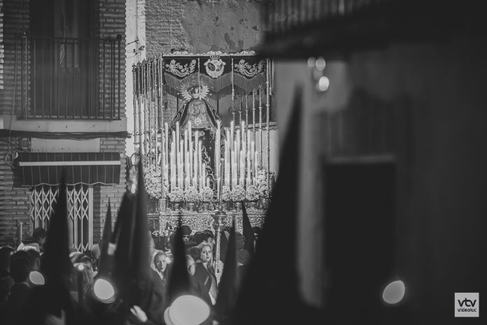 En la noche del Sábado Santo desde la parroquia de Santiago realiza su estación de penitencia la Hermandad de Nuestra Señora de la Soledad con la nostalgia propia del final de la Semana Santa.