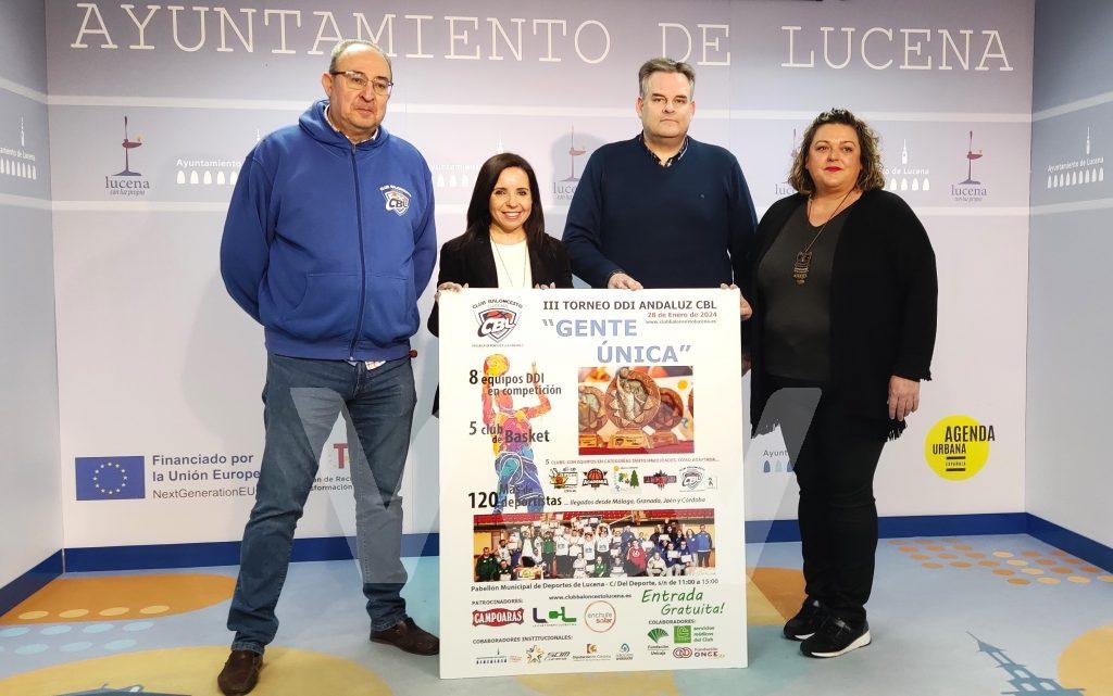 El Pabellón Deportivo Antonio Ruiz Canela de Lucena acoge este domingo 28 de enero la tercera edición del Torneo DDI Andaluz de Baloncesto “Gente Única” que organiza el Club Baloncesto Lucena y en el que participarán más de 120 deportistas con discapacidad intelectual procedentes de los mejores clubes de Málaga, Granada, Jaén y Córdoba.
