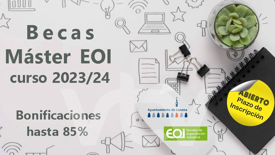 El 5 de julio concluye el plazo abierto por el Ayuntamiento de Lucena para solicitar las becas municipales para el programa máster o cursos superiores oficiales de la oferta académica de la Escuela de Organización Industrial (EOI) para el curso 2023-24.