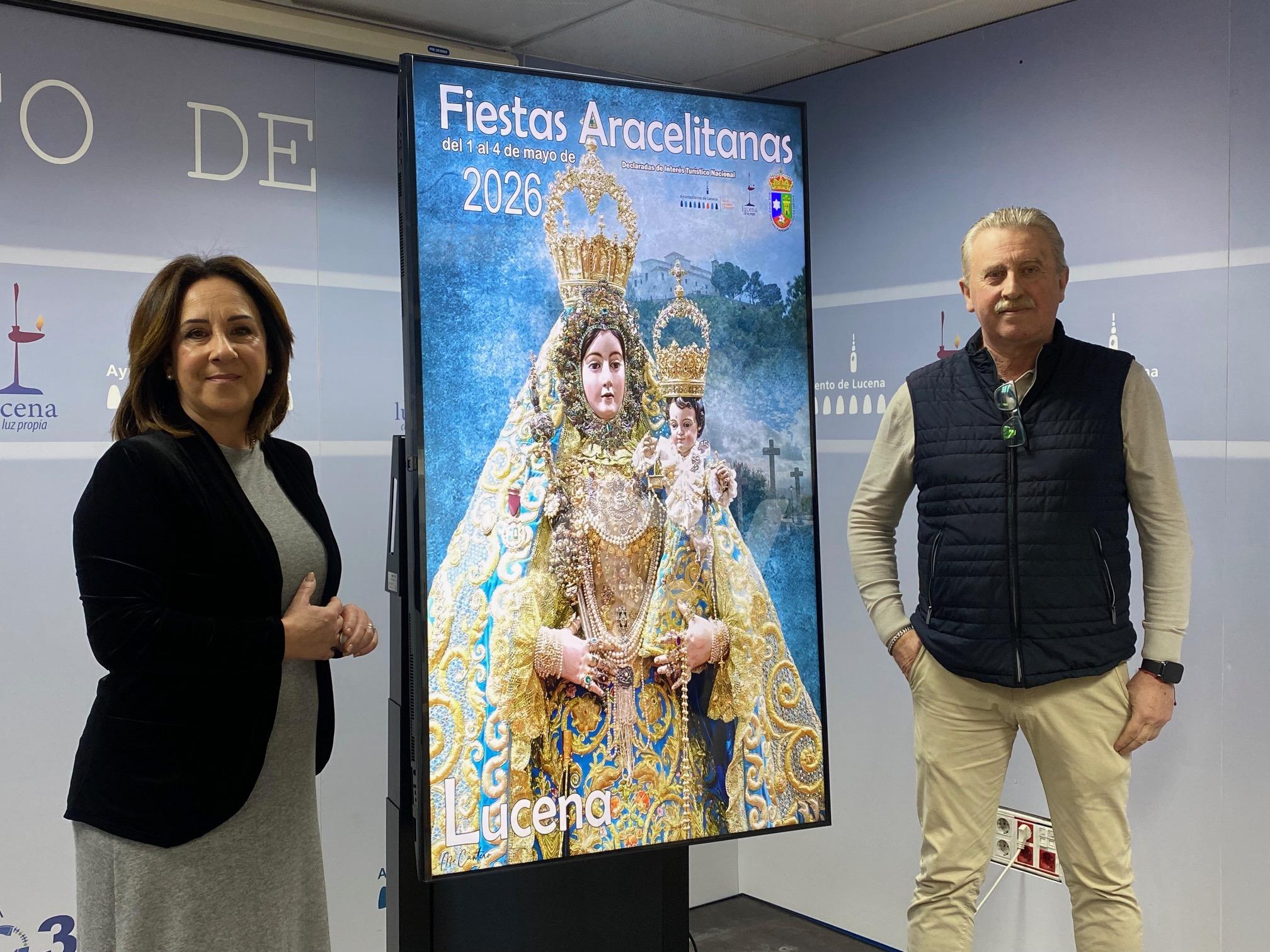 La delegación de Fiestas ha presentado el cartel que anunciará las Fiestas Aracelitanas 2026. Se trata de un trabajo de Miguel Cantero Sabán, en el que podemos apreciar a la Virgen de Araceli en primer plano el día del besamanos. En el fondo encontramos las Tres Cruces y el Santuario.