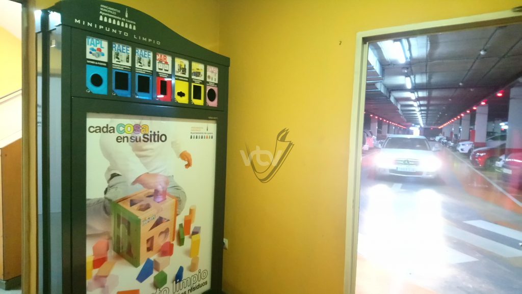 El primer ‘minipunto limpio’ de la localidad se sitúa en la primera planta del aparcamiento de la plaza Nueva, en el rellano entre la escalera y el parking de la entrada al mismo, junto al Ayuntamiento.