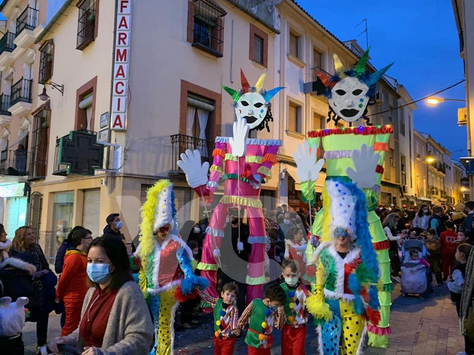 El programa se abría con el pasacalles de carnaval desde la plaza de Santiago, que se mantuvo como punto de encuentro para los disfraces, que hicieron un recorrido por las calles Lademora, Ballesteros, Plaza del Coso, Juan Valera, Las Torres, El Peso, El Agua, Los Maristas, Alcaide y Plaza Nueva, acompañado por la música de la Batucada Samborejo y la Banda de Música de Lucena.